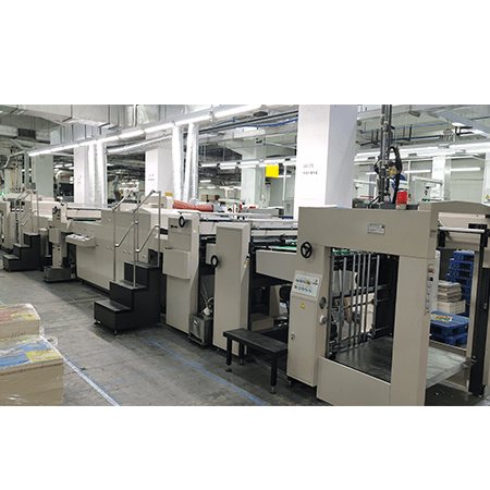The latest high speed model, the production speed can be up to 8000 pieces per hour, and can do UV oil or water varnish.