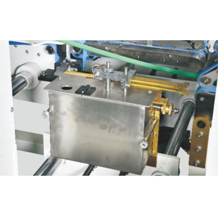 Each mechanical gluing tanks are placed in left/right sides, easy disassembly and maintain, optional cold glue system for bottom-hooked or special shape or small box.