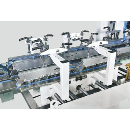 3 boards type conveying construction, segment type upper board function; flexible for special shape box converting. Provision for mounting the future independent rear-hook parts.